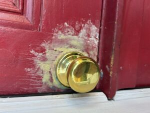 Our work extended to every vulnerable surface: we re-secured loose siding and structural components, replaced rotted window sills with weather-resistant timber, and painstakingly restored jammed window frames by stripping decades of paint buildup and returning them to full working order. Each door was carefully restored and fitted with new, high-security hardware that blends seamlessly with the home’s classic aesthetic.